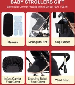 Luxe Kinderwagen 3 In 1 – Wandelwagen – Kinderwagen 3-in-1 Incl Autostoel – Kinderwagen Maxi Cosi – Buggy 3 In 1 – Newborn – Zwart/goud