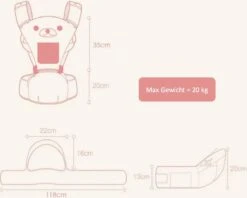 Baby Draagzak – Buik/Rug Babydrager Met Zacht Zitje (0-36 Maanden) – Bruine Beer