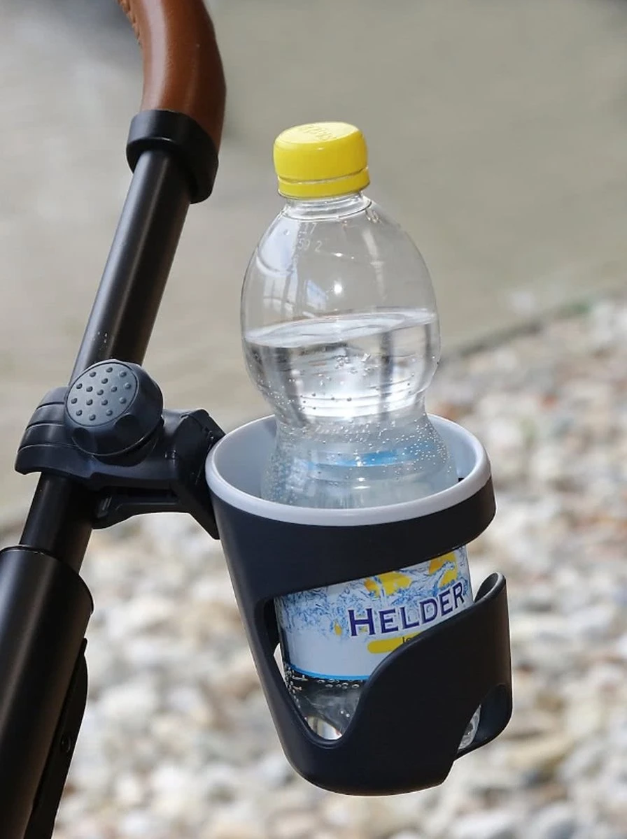 Een mooie universele bekerhouder van A3 voor op de kinderwagen of wandelwagen! Met de klembevestiging met schroef past hij vrijwel overal op.