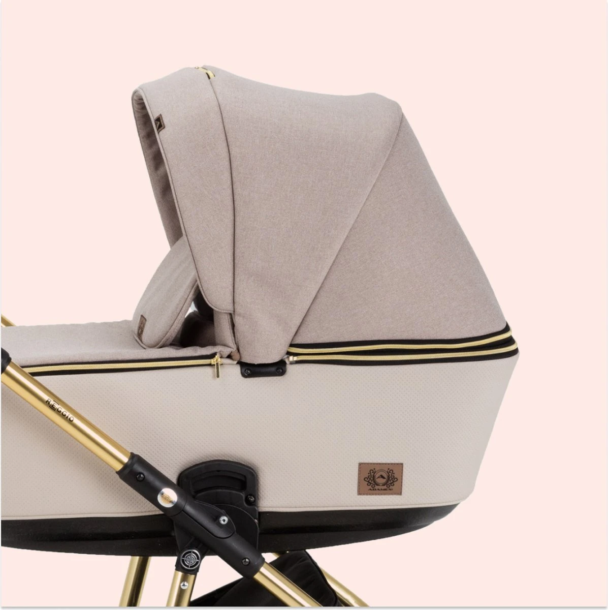 De ‘’Reggio Special edition’’ is een exclusief exemplaar van de Reggio wandelwagen lijn. Het hoogglans gepolijste aluminium frame en de zorgvuldige selectie van hoogwaardige materialen maakt deze kinderwagen bijzonder. Deze multifunctionele kinderwagen van Adamex heeft een onderstel dat opgevouwen kan worden tot een compact formaat. De bekleding van de kinderwagen combineert op elegante wijze functionaliteit en eenvoud. De luifels van de reiswieg hebben een extra ventilatieopening en een zonneklep. Ook heeft de reiswieg een verstelbare ventilatieopening aan de onderkant. De hoes van de kinderwagen bevat een venster waardoor ouders het kind kunnen blijven zien. De moderne kinderwagen is voorzien van onderhoudsvrije polyurethaan wielen die niet opgepompt hoeven te worden. De Reggio Special is voorzien van een kokosvezel matras.
