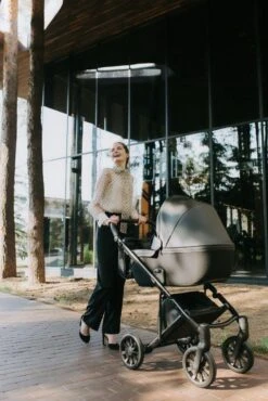 De E-type kinderwagen van het merk Anex is dé nieuwe generatie kinderwagens voor ouders die gek zijn op de combinatie, stijl en comfort. De kinderwagen is afgewerkt met hoogwaardig ecologisch leer, dit zorgt voor een nog eleganter design. Anex heeft overal aan gedacht, zo beschikt het frame over een automatisch beveiligingssysteem tegen onbedoeld inklappen. De binnenkant van de reiswieg beschikt over anti-allergeen katoen en een orthopedisch matrasje. De kleine, maar stevige wielen zijn geschikt voor elk terrein, zelfs off-road!