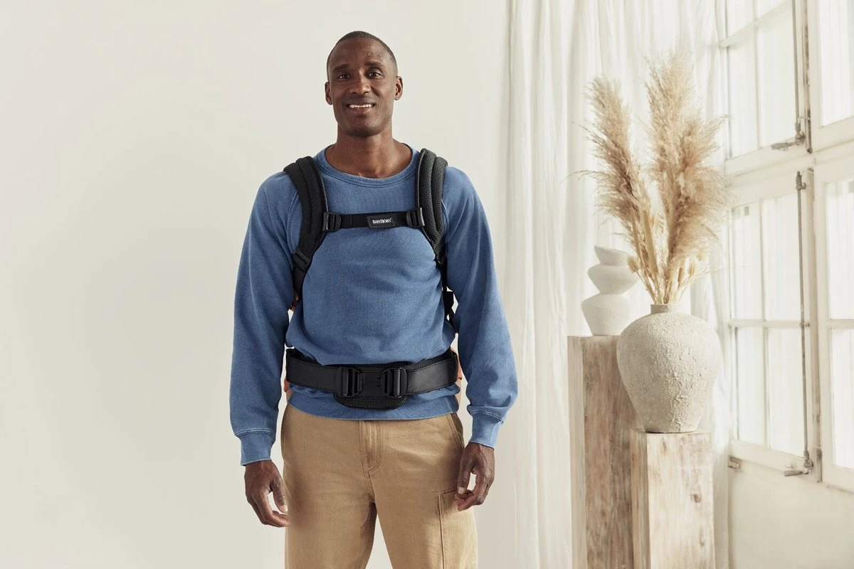 Draagzak Harmony is ergonomisch ontworpen en geschikt voor verschillende lichaamstypen. In de gebruikershandleiding kun je lezen hoe je de draagzak kunt verstellen zodat hij jou en je partner − of een goede vriend of een familielid − goed past.
