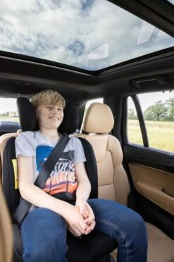 - Cocooning-ontwerp dat verandert in een gr 2/3 zitverhoger met opbergvak voor de gesp en het gordelsysteem