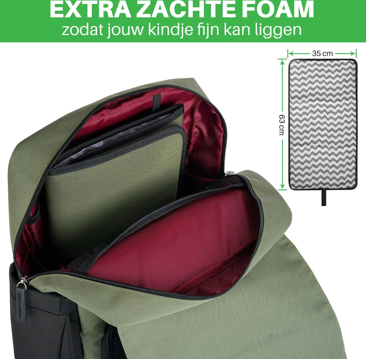 De tas koop je inclusief een gratis verschoonmatje voorzien van foam, ideaal als je onderweg bent en je kindje een schone luier nodig heeft. Zo is je baby tijdens het verschonen altijd verzekerd van een comfortabele ondergrond.