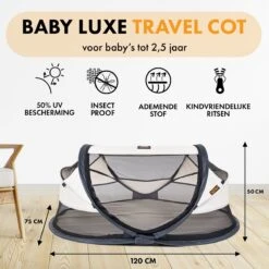 De DERYAN Baby Luxe is dé ideale oplossing én vervanging van het zware campingbedje. Laat je niets meer in de weg staan met deze compacte, lichtgewicht & pop-up reistent. De DERYAN Baby Luxe biedt een ultieme bescherming tegen zon, muggen en andere insecten. Met zijn 1,8 kg neem je ‘m in een handomdraai mee naar ouders, familie, vrienden, vakantie of de wereldreis van je dromen! Ondenkbaar veel mogelijkheden!