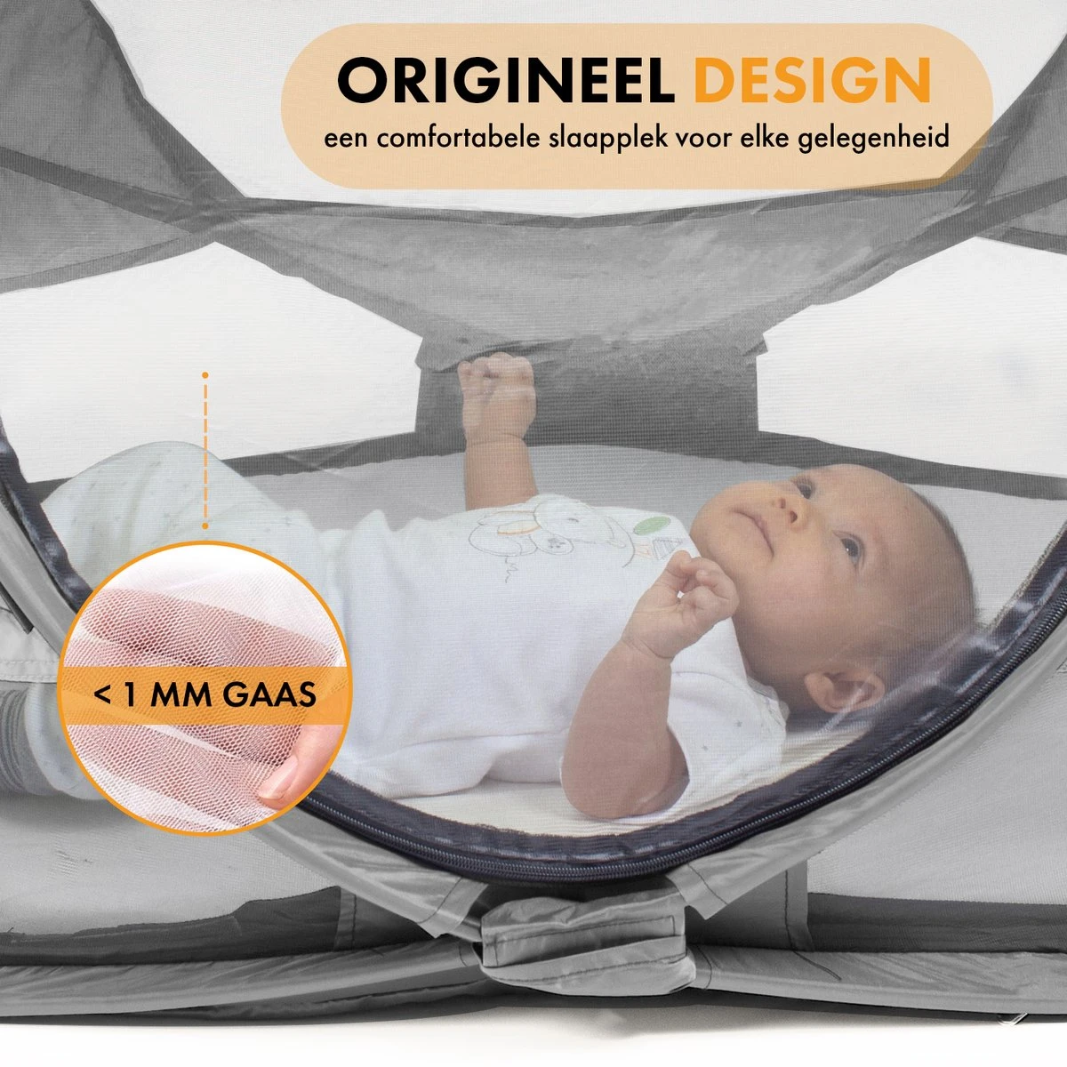 Dankzij het handige en zeer sterke gaas, welke kleiner dan 1 mm is, houdt de DERYAN Baby Luxe alle muggen en overige insecten tegen. Een bijkomend voordeel is dat het voor een prima luchtventilatie zorgt.