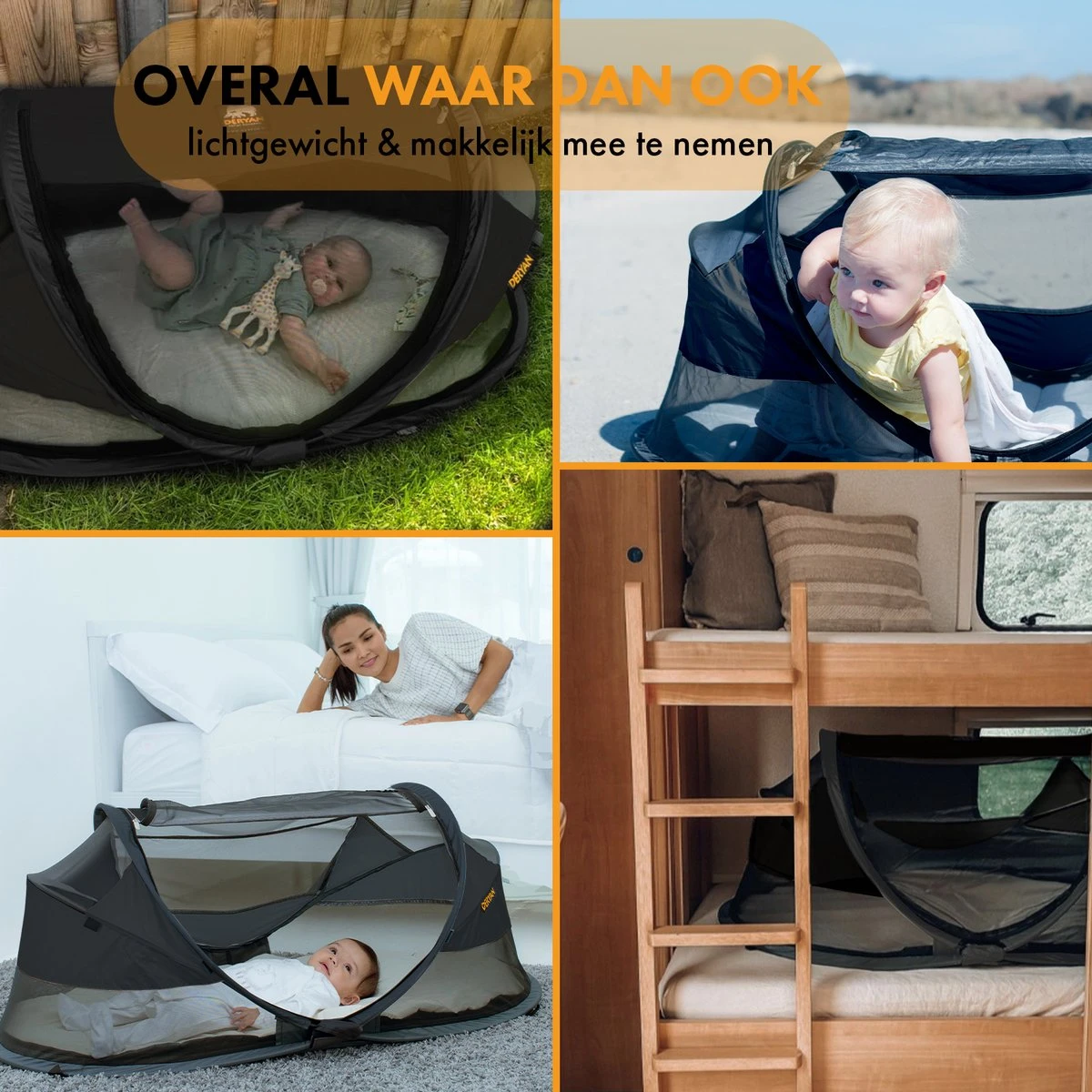 De DERYAN Baby Luxe is dé ideale oplossing én vervanging van het zware campingbedje. Laat je niets meer in de weg staan met deze compacte, lichtgewicht & pop-up reistent. De DERYAN Baby Luxe biedt een ultieme bescherming tegen zon, muggen en andere insecten. Met zijn 1,8 kg neem je ‘m in een handomdraai mee naar ouders, familie, vrienden, vakantie of de wereldreis van je dromen! Ondenkbaar veel mogelijkheden!