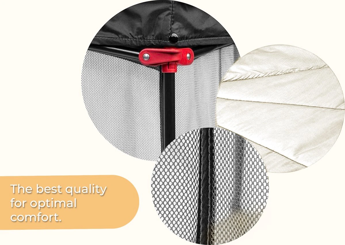 Zoals u van ons gewend bent staat de Speelbox in 2 seconden, klaar voor gebruik. Met de veilige vergrendelingen kan de Portable PlayPen zeker niet meer inklappen. Uw kind heeft extra bewegingsruimte met deze grote Speelbox welke voor u niet in de weg staat. Ook binnen 8 seconden heeft u de Portable PlayPen weer in elkaar. Met de handige en stevige draagtas neemt u onze Deryan Portable PlayPen makkelijk overal mee naar toe.
