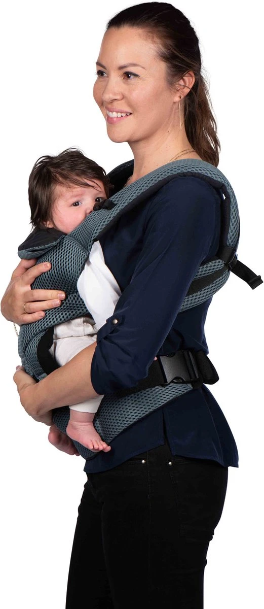 Een ander voordeel van de Dooky draagzak is dat je deze op 3 verschillende manieren kunt gebruiken. In de eerste maanden draag je de baby met het gezichtje naar de ouder toe. Breekt het moment aan dat je kindje meer van de omgeving wil zien, dan kun je de baby omgekeerd dragen. Vanaf 6 maanden is het ook mogelijk je kindje op de rug te dragen. Welke positie je ook kiest, er is altijd voldoende ondersteuning van ruggetje en hoofd van je kindje door het stevige materiaal en de verstelbare hoofdsteun.
