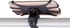 Je kunt de telefoonhouder ook plaatsen op de stang van het kinderzitje zodat je kleintje naar de telefoon kan kijken.