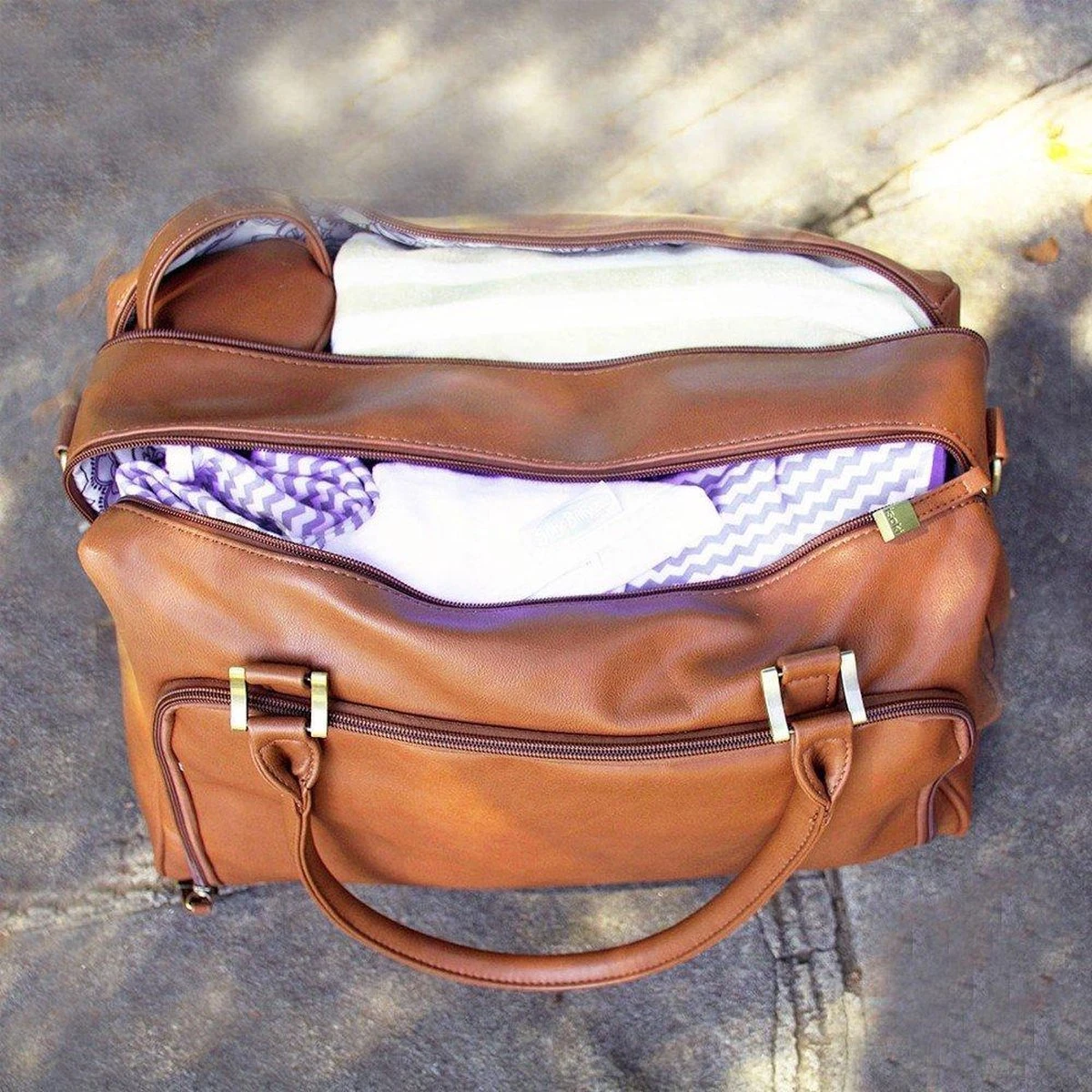 Isoki grote luiertas Double Zip Satchel Chestnut Redwood – kunstleer – breedte 42 cm