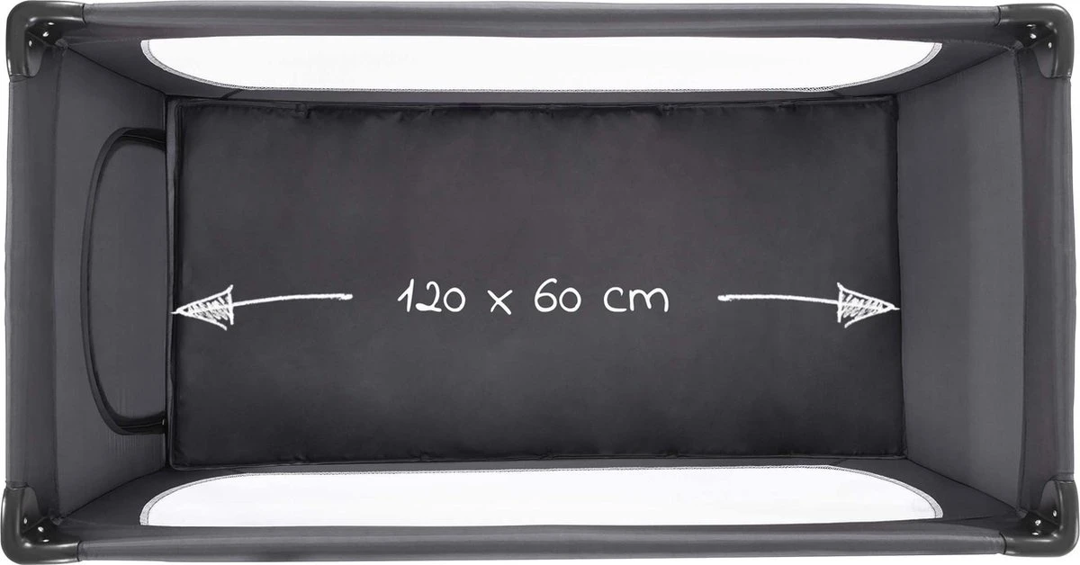- 120 x 60 cm, dus ook groot genoeg om snel op te zetten en als box te gebruiken wanneer je zelf even met iets anders bezig bent.