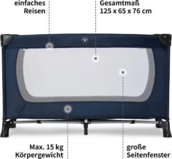 - Veilig en handig: Zacht gaas aan de zijkant zorgt voor veiligheid en genoeg beluchting in het bed. Het campingbedje heeft 6 poten voor optimale stabiliteit