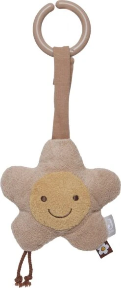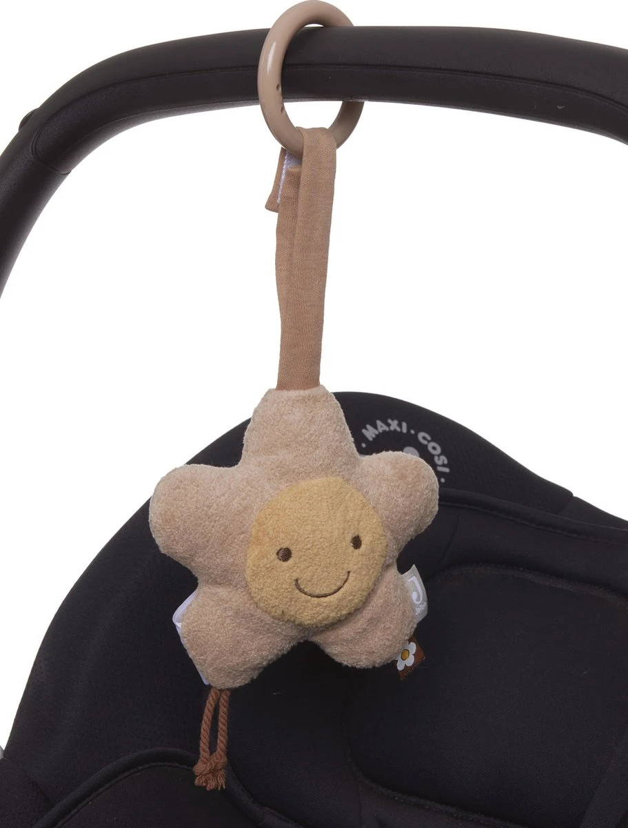 Hoe leuk is deze wagenhanger! Naast dat dit ontzettend leuk staat, zal dit ook de motoriek van jouw kleintje stimuleren en de zintuigen prikkelen. Dit schattige bloemetje kun je met de plastic ring gemakkelijk aan de maxi cosi of wandel wagen bevestigen. De binnenkant bevat een belletje. Ook zit er een extra kleurrijke tag aan en twee korte koortjes. Dit allen voor het vermaak van jouw mini! De wagenhanger is 18 cm.