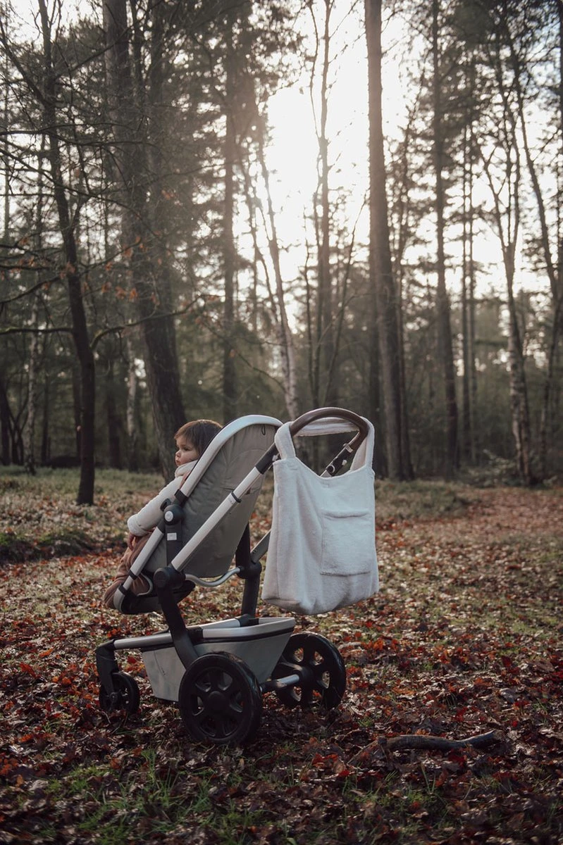 De Koeka mom bag is helemaal ‘on trend’! Een handige tas die je om de duwstang van de buggy hangt als je met je kleintje op avontuur gaat. Maar met deze mom bag mag je ook zonder buggy gezien worden! De tas is gevoerd met jersey en heeft een zak voor telefoon of sleutels. De mom bag sluit aan de bovenzijde met een stukje klittenband.