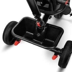 Een driewieler met een voor- of achterzitje. De uitgeklapte luifel en voetsteun voor peuters zorgen voor comfort voor de kinderen, en de gordels en de hoofdband zorgen voor veiligheid.