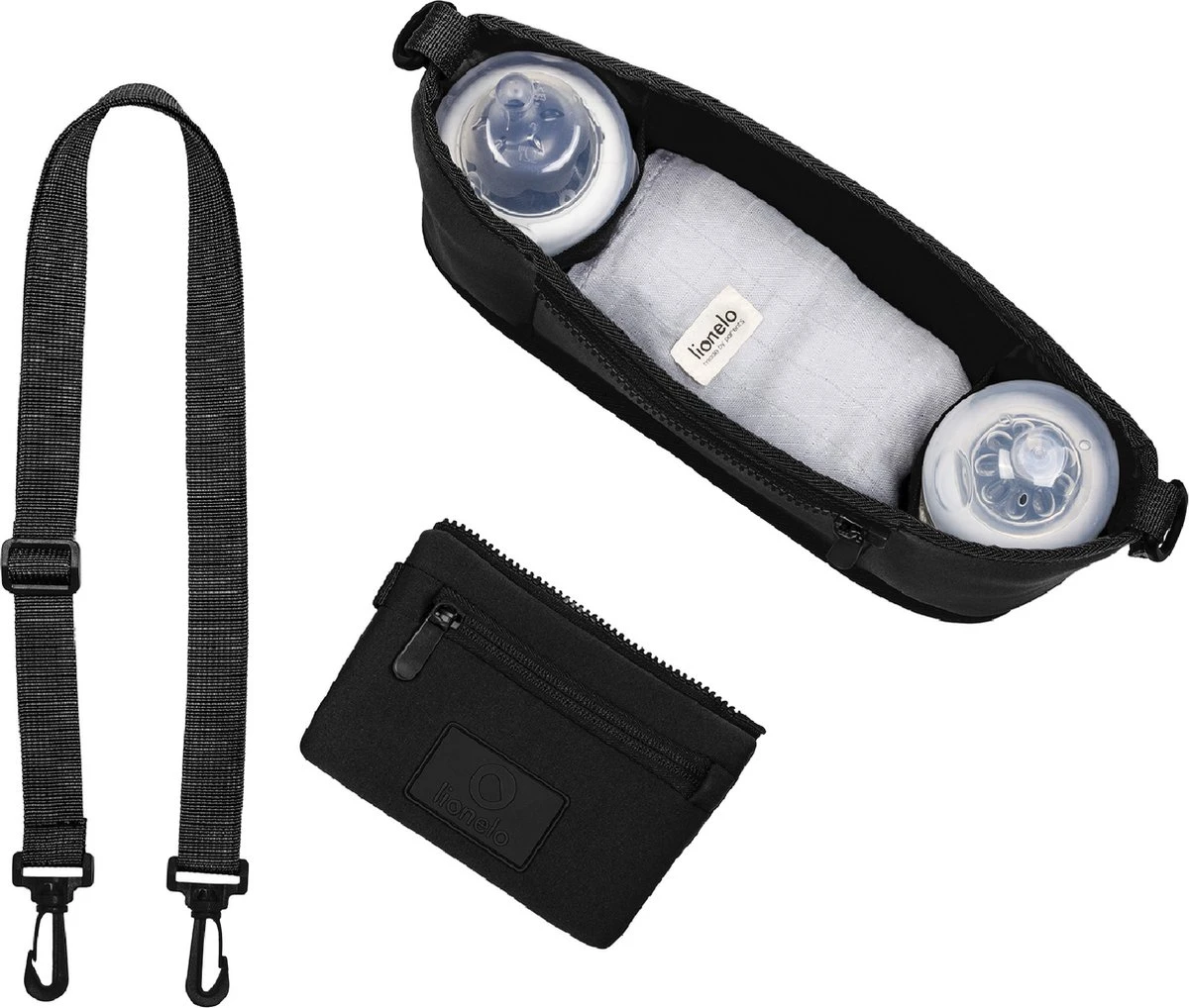 Hiermee heb je alle benodigde items bij de hand, zelfs als je niet in de buurt van de kinderwagen staat. Comfortabel opgehangen over de schouder, de organisator is perfect om te lopen.