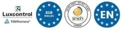 De hoge kwaliteit, betrouwbaarheid en veiligheid van Luuk wordt bevestigd door de toegekende Lux Control en SNCH certificaten. Het product voldoet aan de ECE R44.04 norm.