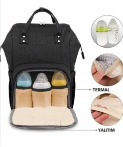 Vak voor vochtige doekjes aan de linkerkant van de tas. Direct achter de tas zijn er 3 compartimenten waar je echte Thermo Feature Babyflessen of iets koud-warm (2-4 uur effectief) kunt plaatsen en een gedeelte tegenover deze drie compartimenten, volledig verstelbare schouderbanden. Dankzij de kinderwagenhangers aan de bovenkant van de tas kun je de tas gemakkelijk aan de kinderwagen hangen.