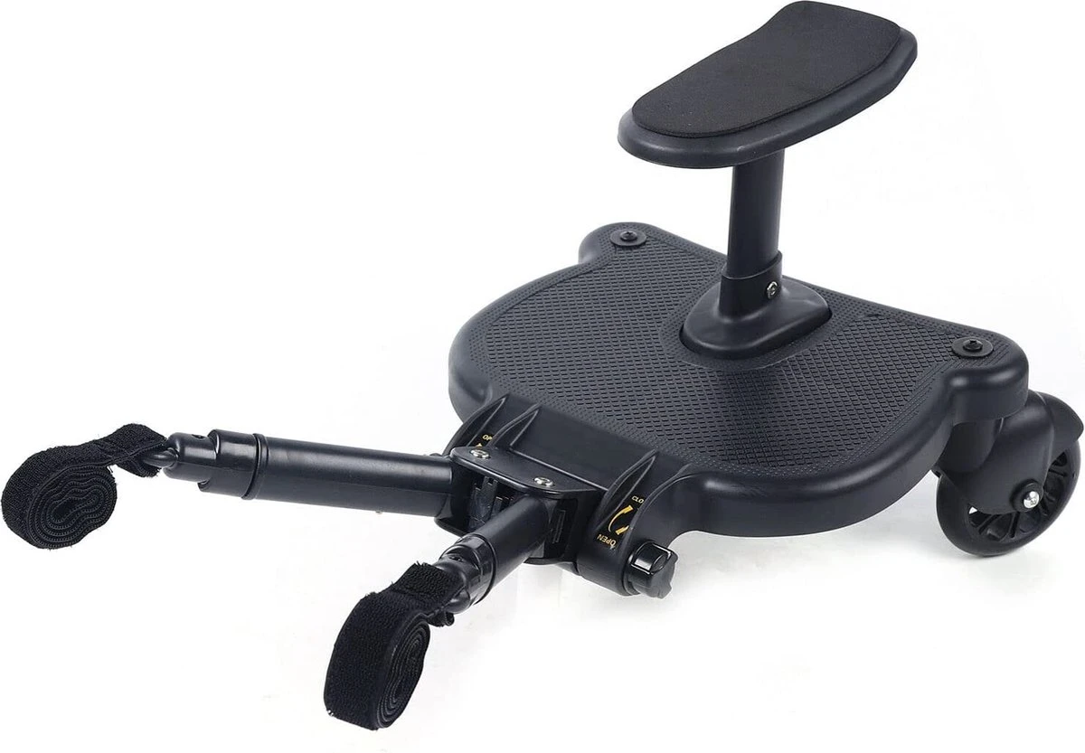 Merkloos Meerijdplankje – Kinderwagen – Buggy – KANT EN KLAAR – Al In Elkaar Gezet! – Met Zitje Voor Uw Kind – Zwart
