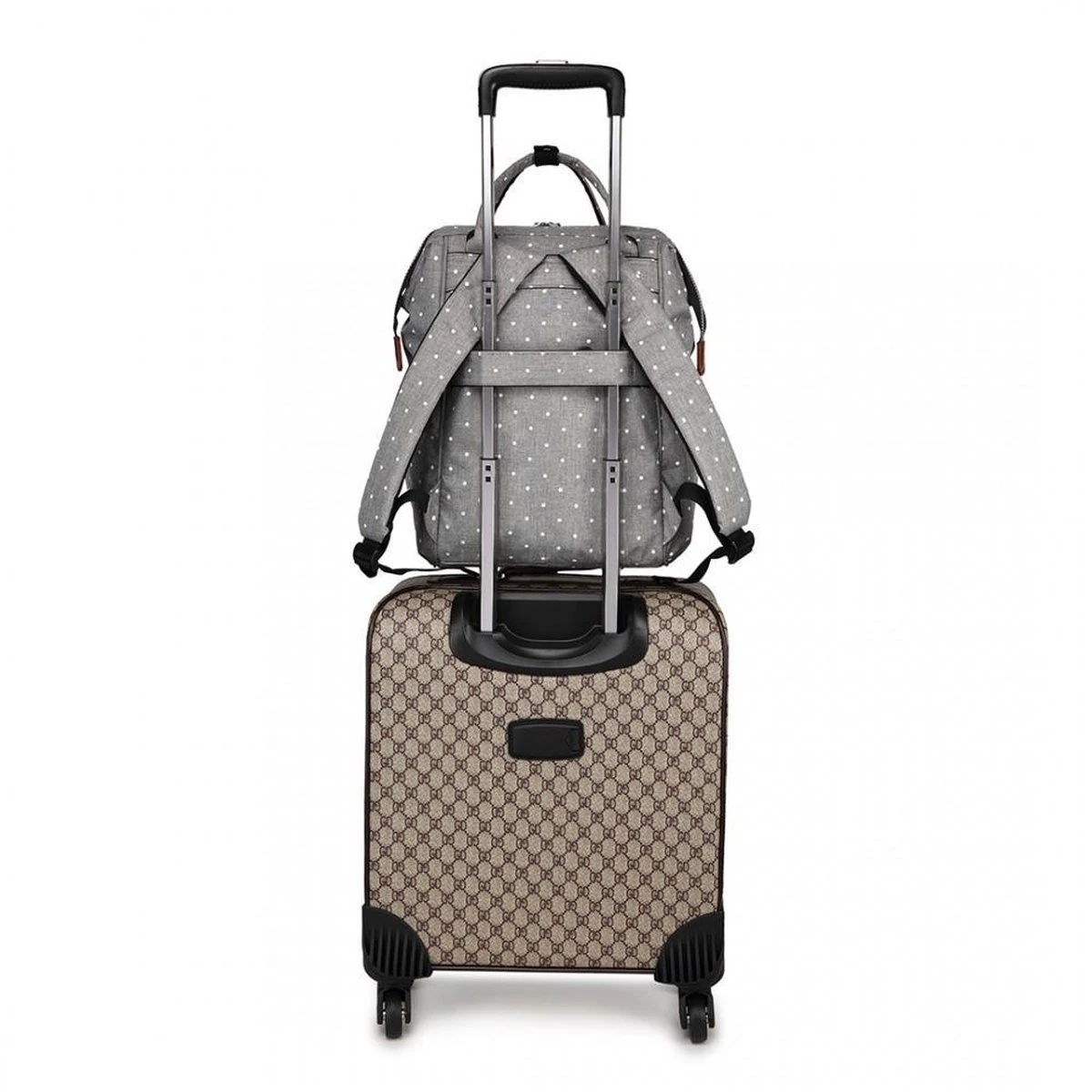 De tas beschikt over een zeer stijlvolle, strakke en moderne uitstraling. Dit maakt de tas geschikt voor werkelijk iedere gelegenheid, en ja ook ieder outfit! Naast dat de luiertas lekker veel opslagruimte biedt kun je deze ook nog eens op verschillende manieren dragen. Naast een schoudertas met verstelbare schouderriemen, heeft de tas ook handige handvaten. Hiermee is de tas snel op te pakken en kan deze zelfs dienen als tote-bag. Dit is nog niet alles! Want je kunt de tas dankzij de twee bijgeleverde buggy straps binnen een handomdraai ophangen aan je buggy, wandelwagen of kinderwagen. Zo kies je telkens zelf hoe je de tas het liefste draagt. Daarbovenop is er een extra riem aan de achterkant waarbij je de rugzak gemakkelijk over je kofferhandgreep kan plaatsen!