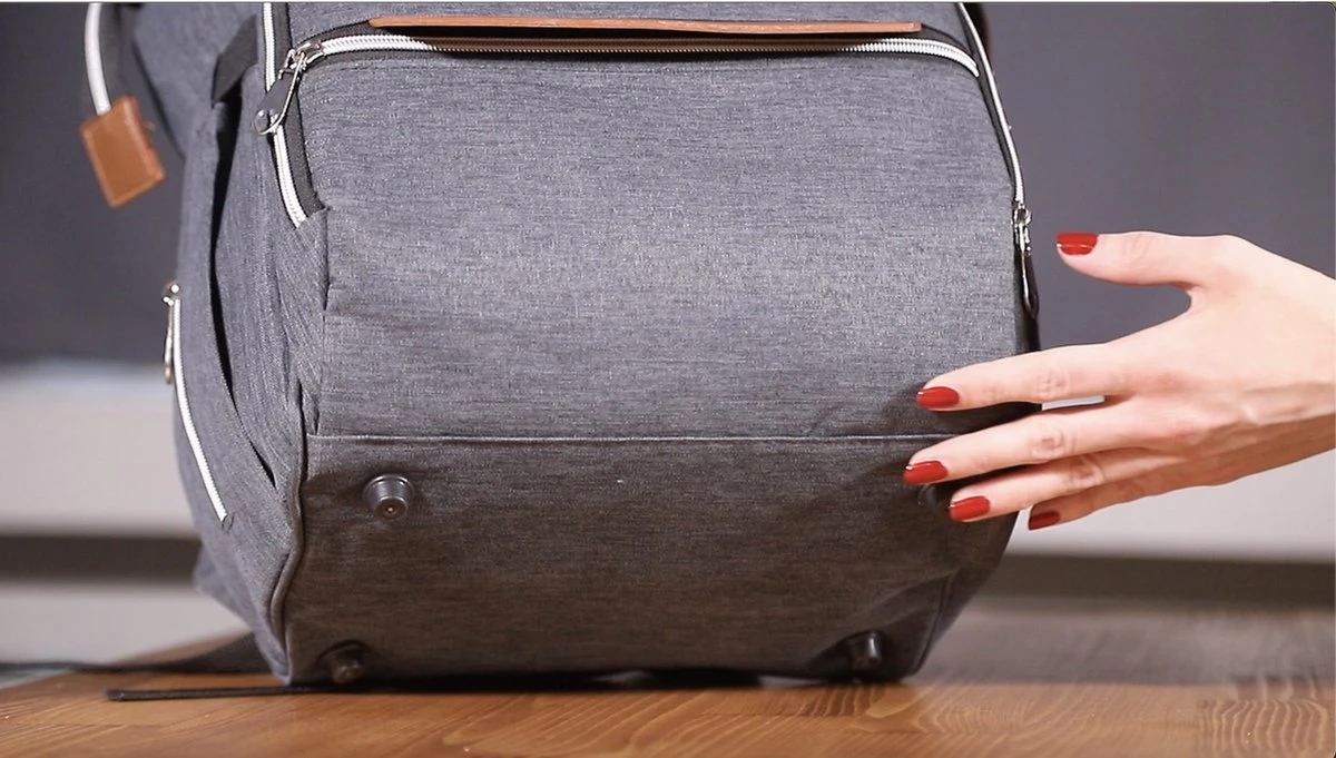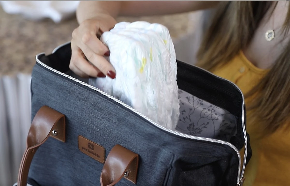 Periwinkle luiertassen hebben een dubbele ritssluiting aan de bovenkant die in beide richtingen kan worden geopend.