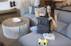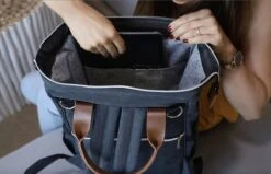 Periwinkle luiertassen hebben een hoogwaardige binnenvoering en een binnenkant van de tas met vier verschillende compartimenten waar je je verschillende items in kunt stoppen.