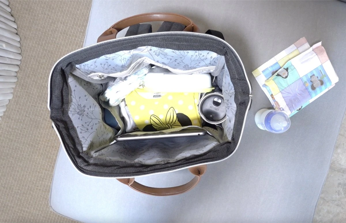 Peiwinkle mommy bag heeft een groot binnenvolume dat je comfortabel kunt gebruiken met metalen van vaste kwaliteit.