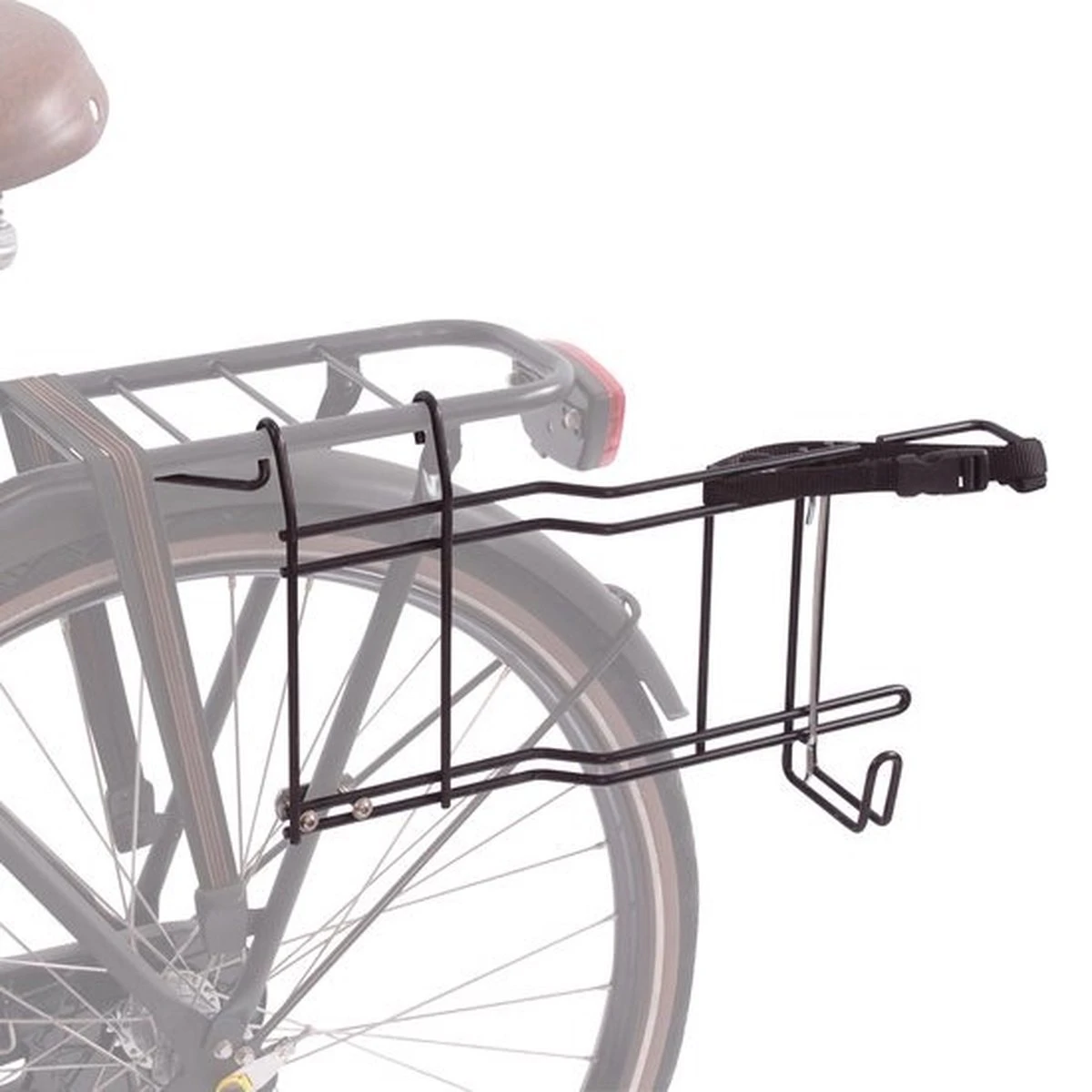 Met de buggydrager van buggy mee kunt u eenvoudig en veilig een buggy van maximaal 4 kilo meenemen. Eenvoudig maar stevig te monteren aan de linkerzijde van de fiets. De buggy wordt op 3 punten vastgezet aan de fiets. Deze drager is geschikt voor bijna elk model buggy tot en met 4 kilo. De ophangbeugel klapt automatisch weg voor de veiligheid van andere weggebruikers. Uitgevoerd met een sterke spanband, zodat uw buggy goed vast zit. De buggy hangt stevig en zeker niet te laag bij de grond.Deze buggydragen wordt geleverd inclusief montagematerialen en handleiding.