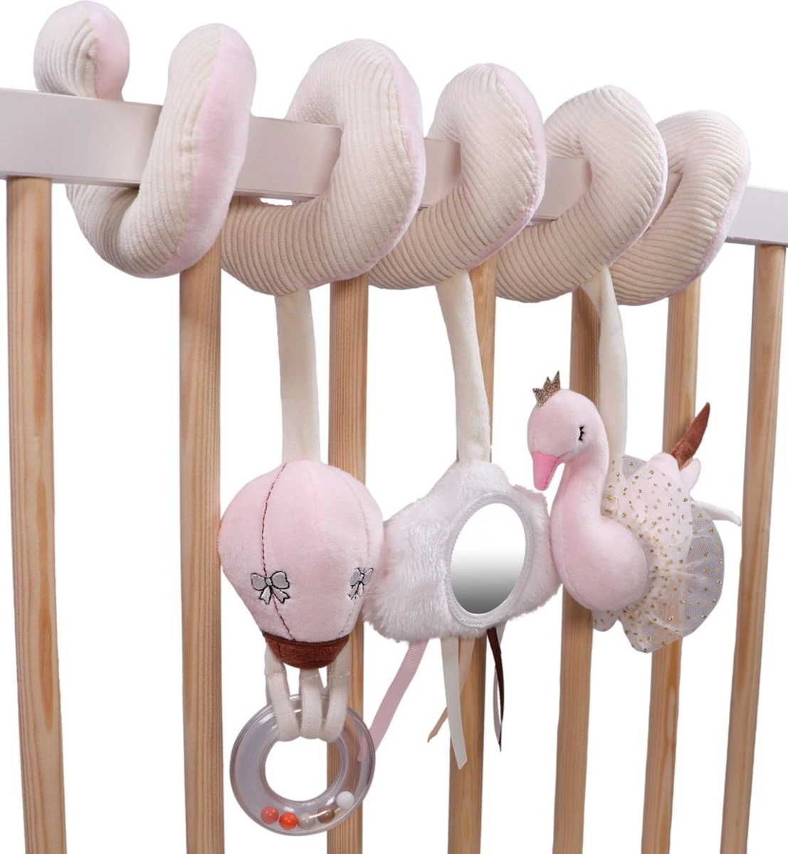 Deze boxspiraal van Tryco houdt je kleine meid gezelschap tijdens een slaapje of een wandelrondje! De Swan Ivy boxspiraal kent verschillende kleuren, geluidjes en texturen! Door de spiraalvorm kan hij gemakkelijk bevestigd worden aan de box, autostoel of kinderwagen waardoor hij altijd bij je kleintje in de buurt is!