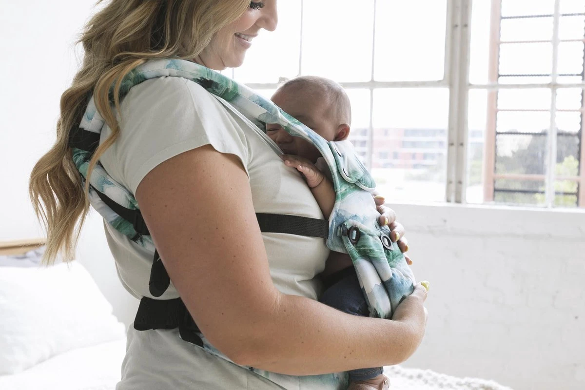 *Het dragen van je kindje met het gezichtje naar voren (face forward) is alleen aan te raden wanneer je kindje voldoende nekstabiliteit heeft en maximaal 15 minuten achter elkaar in een bekende omgeving om teveel prikkels tot een minimum te beperken.
